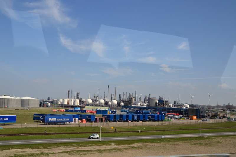 Photo 4: Gas storage and refineries in the port of Rotterdam. A few wind turbines found their way here.