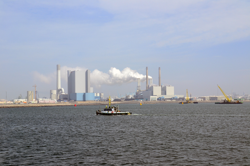 Photo 5: View accoss the Maasvlakte towards two out of nine (!) conventional power plants in Rotterdam.